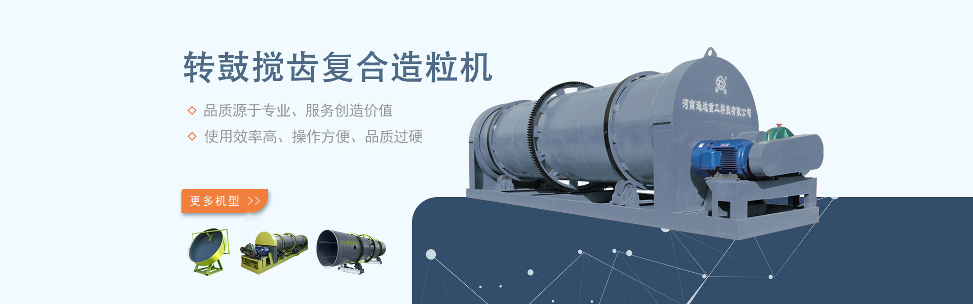 河南通達重工科技有限公司是一家專業研究、制造有機肥和復合肥設備的高新技術企業,有多年的機械加工史。公司位于鄭州西龍港開發區,占地面積136畝,建有標準化重型工業廠房60000平方米。通達重工引進了大中型金加工設備,其中加工中心10臺,激光切割機3臺,各類設備總計100多臺。我公司通過ISO9001-2008質量體系認證,為企業的產品質量和提供了強有力的保障。